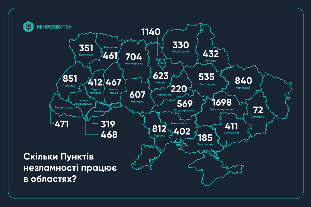 В Україні відкрито 13 362 Пункти підтримки. З них 9 025 функціонують безперервно, а 4 337 готові швидко розпочати роботу у разі потреби.