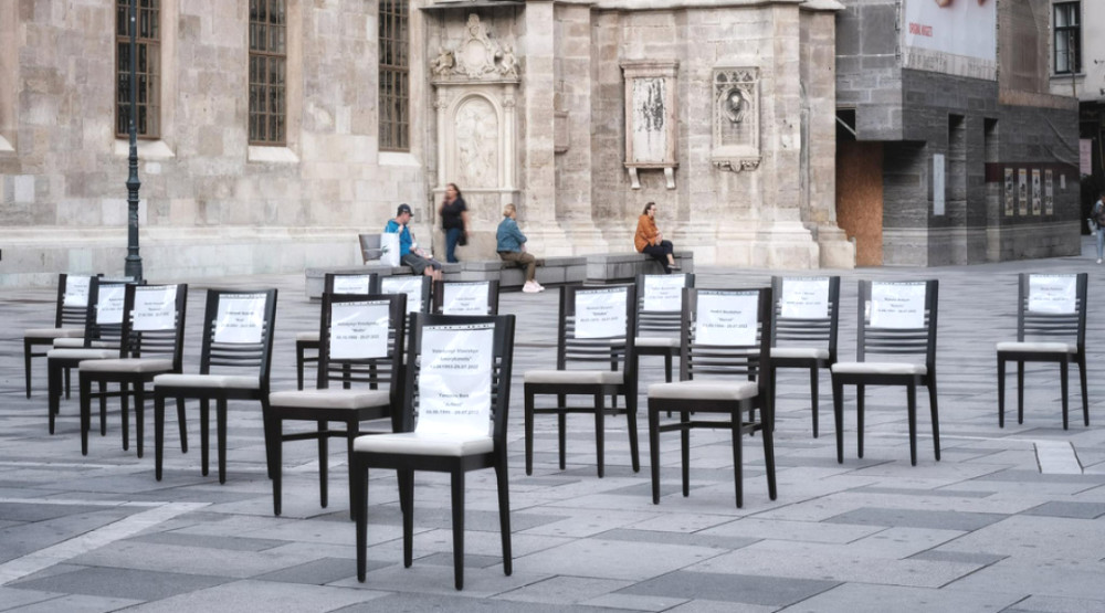 Цю акцію організувала спілка Unlimited Democracy, і вона пройшла на відомій туристичній площі біля Собору Святого Штефана в історичному центрі Відня. Активісти розмістили порожні стільці, кожен з яких символізував одного з загиблих українських воїнів, з вказаними іменами, позивними, датами народження та спільною датою загибелі — 29.07.2022. Біля стільців був встановлений інформаційний стенд, що розповідав про теракт, скоєний російськими військами.