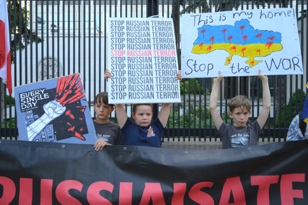 Як повідомляють організатори, учасники акції зібралися, щоб подякувати США за їхню підтримку та закликати не дозволяти "мирні" рішення, які можуть закріпити наслідки агресії.