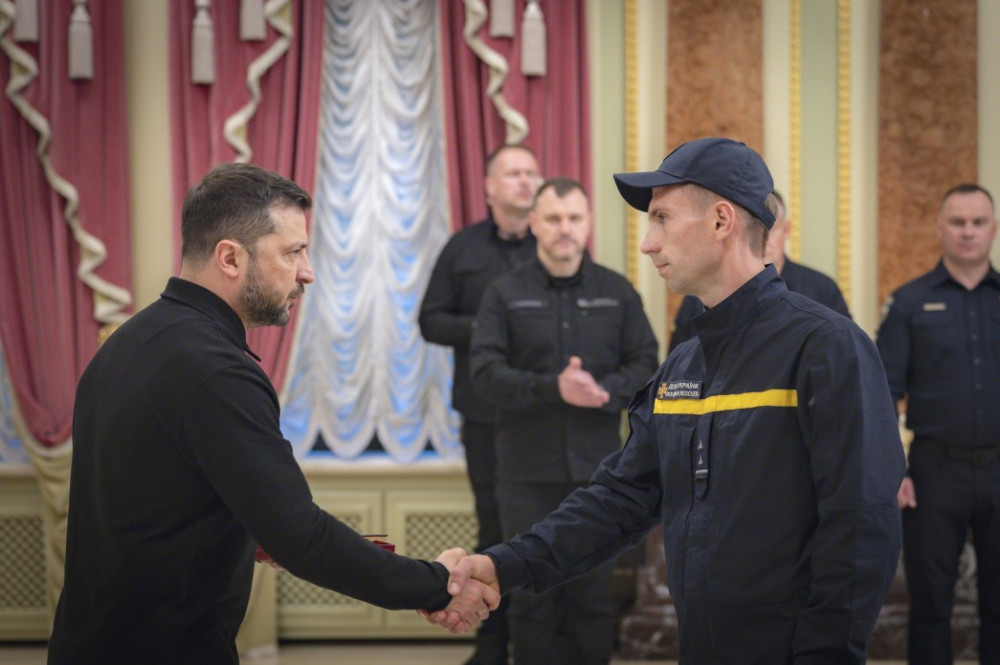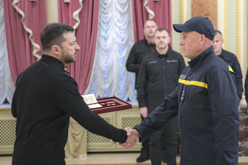 З нагоди Дня рятівника Президент України Володимир Зеленський зустрівся з представниками Державної служби України з надзвичайних ситуацій, привітав їх із професійним святом та вручив державні нагороди.