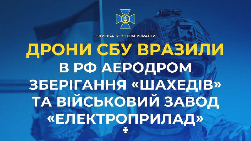 Безпілотники Служби безпеки України здійснили успішні атаки на військові об'єкти противника вночі. Першою метою став військовий аеродром у Приморсько-Ахтарську, де були знищені склади та пускові установки для «Шахедів», які загрожують Україні. Після обстрілу на аеродромі спалахнула пожежа.