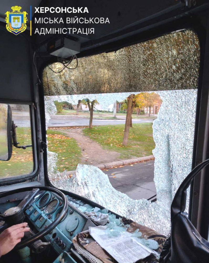 Зазначається, що в результаті атаки розбите лобове скло. Водійка та пасажири не постраждали.