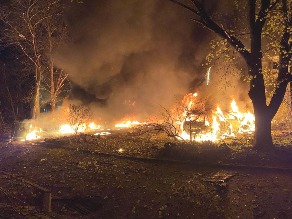У ніч на середу, 9 квітня, російські військові завдали удару по Дніпру за допомогою безпілотників. Внаслідок атаки виникла пожежа, про що повідомили Сергій Лисак, голова Дніпропетровської ОВА, та мер Дніпра Борис Філатов.